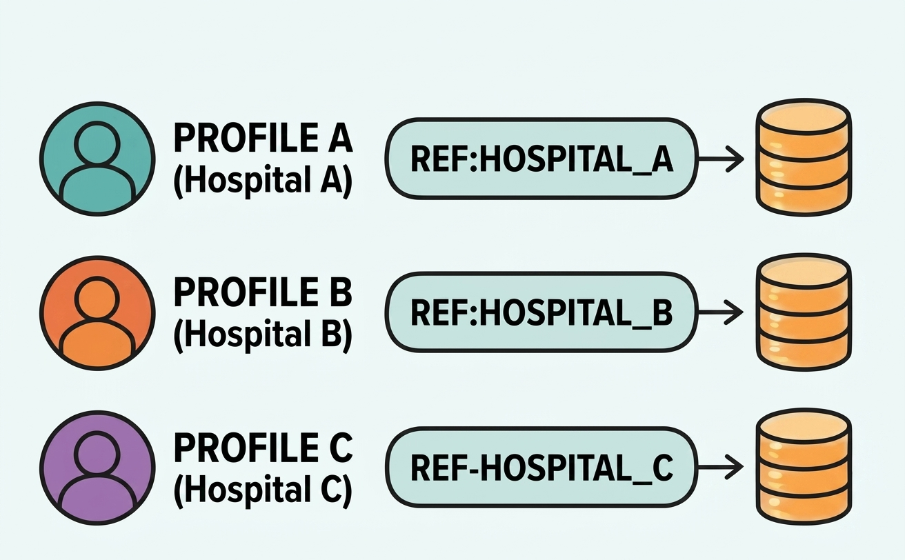 When Hospital A rotates their database password, the admin updates the value in the secret manager once. Every instance that references it connects with the correct credentials automatically on the next call, without any manual intervention required across the organization.