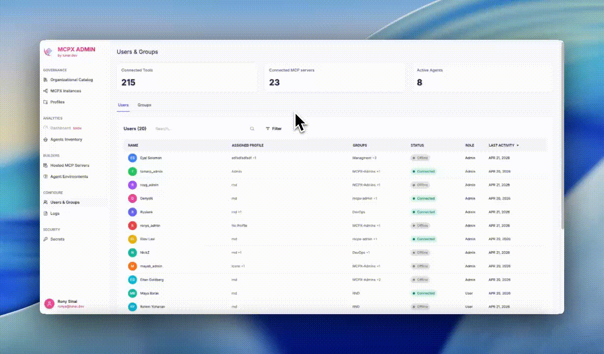 - Compliance: Group-level secret assignment creates a clear record of who has access to what. Every secret access event is logged, giving security teams a complete audit trail for compliance review. MCPX never stores or logs underlying values and integrates with secret managers that carry existing compliance certifications.