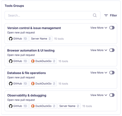 - Tool Groups allow only the relevant subset of tools to be exposed per agent, task, or role‍