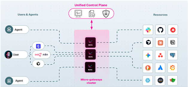 Employs a Microgateway Architecture, deploying a distributed cluster of micro-gateways that enforce identity-scoped access. A critical technical differentiator for Lunar is the ability to deploy these micro-gateways within the organization’s existing VPC or cluster. This ensures data residency and prevents egress of sensitive metadata. In the event of an anomaly or breach, administrators can isolate or block individual agents at the microgateway level without impacting the rest of the cluster.utilizes a Gateway Plane architecture built on the Hono framework. It functions as a stateless proxy that performs in-memory checks for authentication and rate-limiting, utilizing NATS for real-time configuration syncing from the control plane. This model is optimized for performance, capable of handling 250-350 RPS per pod with minimal overhead.