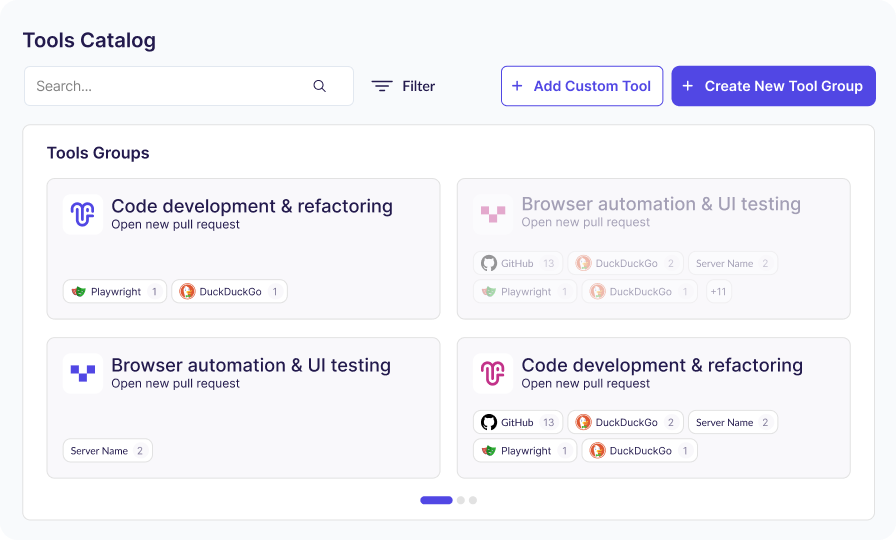 TrueFoundry provides Virtual MCP Servers, which allow administrators to combine tools from multiple servers into a curated subset. While effective for basic tool scoping, it currently only supports listing and calling tools.